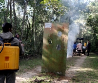 Para isso, a equipe de funcionários e brigadistas da RPPN Rio dos Pilões realizou uma simulação de combate ao fogo em que os presentes foram introduzidos aos equipamentos e a possíveis situações reais.