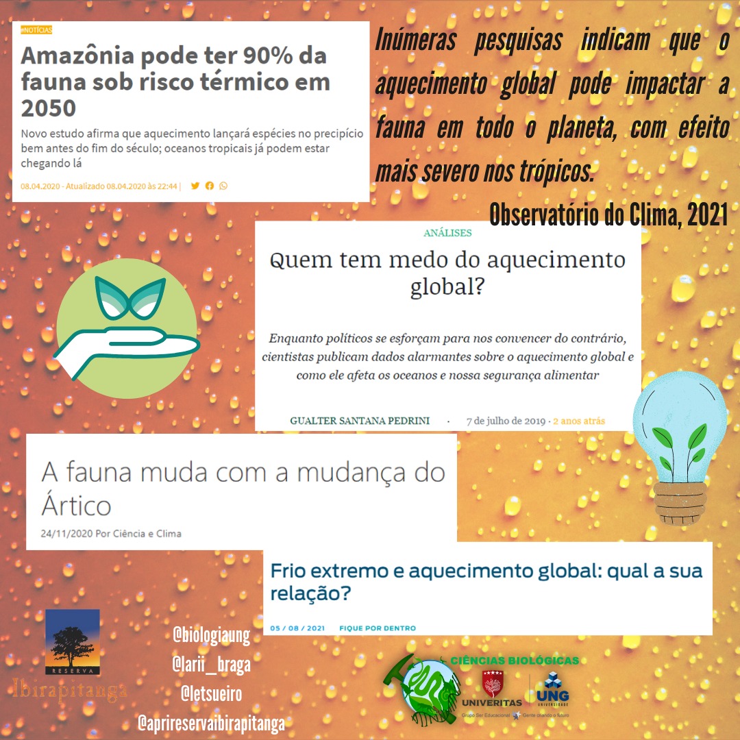 ⇒ Já que aprendemos bastante sobre os s mamíferos que temos na RRPN Rio dos Pilões, agora vamos saber como a fauna, de forma geral pode ser impactada pelas mudanças climáticas.